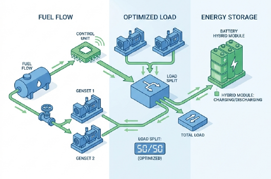 Where practical, recover waste heat for space or process heating. For sites with variable loads, hybrid systems combining batteries and diesel reduce run time and let engines operate in their most efficient range. Hybridization can be especially attractive for telecom towers and remote microgrids.